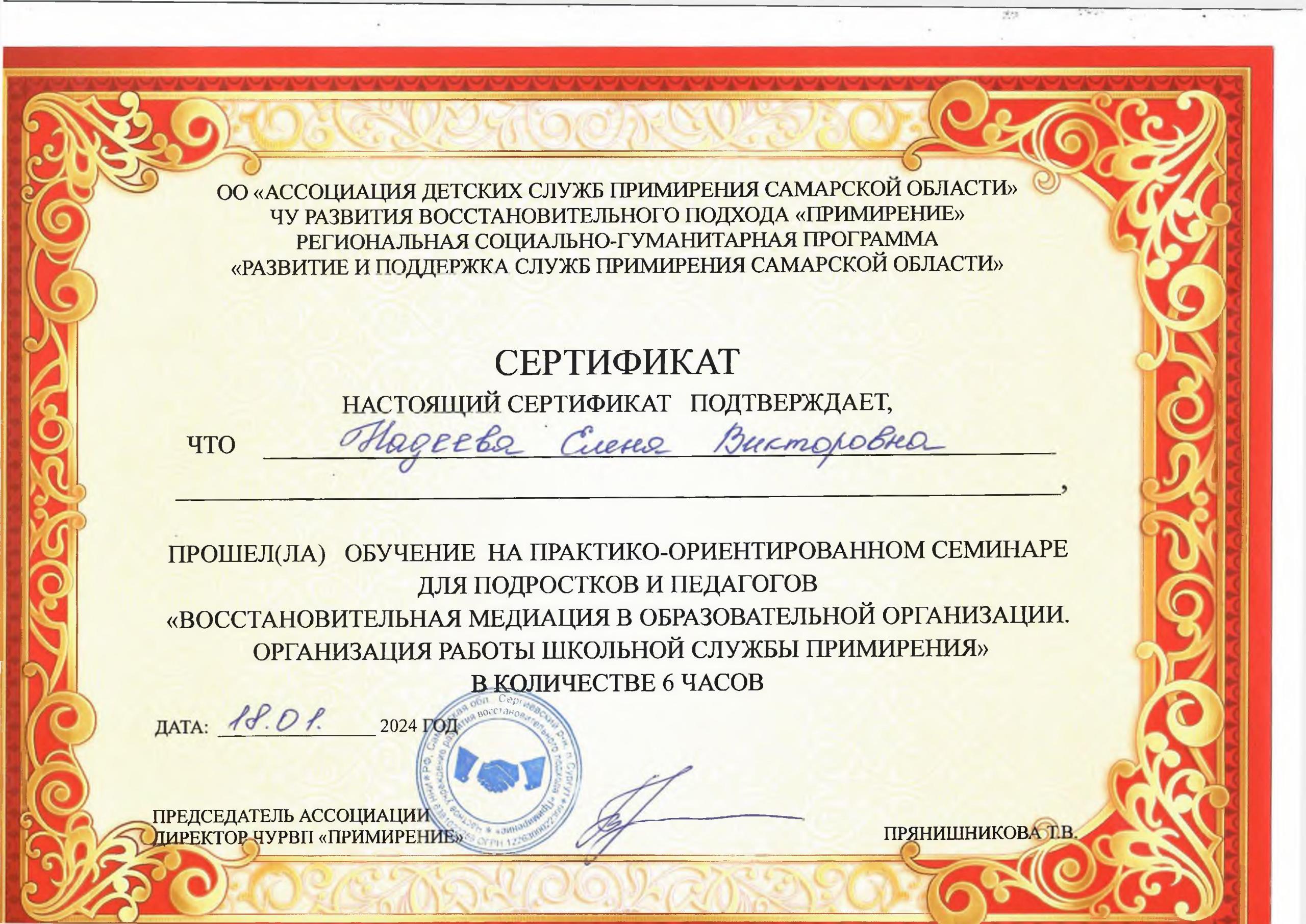 Куратор службы примирения: педагог-психолог Надеева Елена Викторовна тел. 8-927-657-11-01