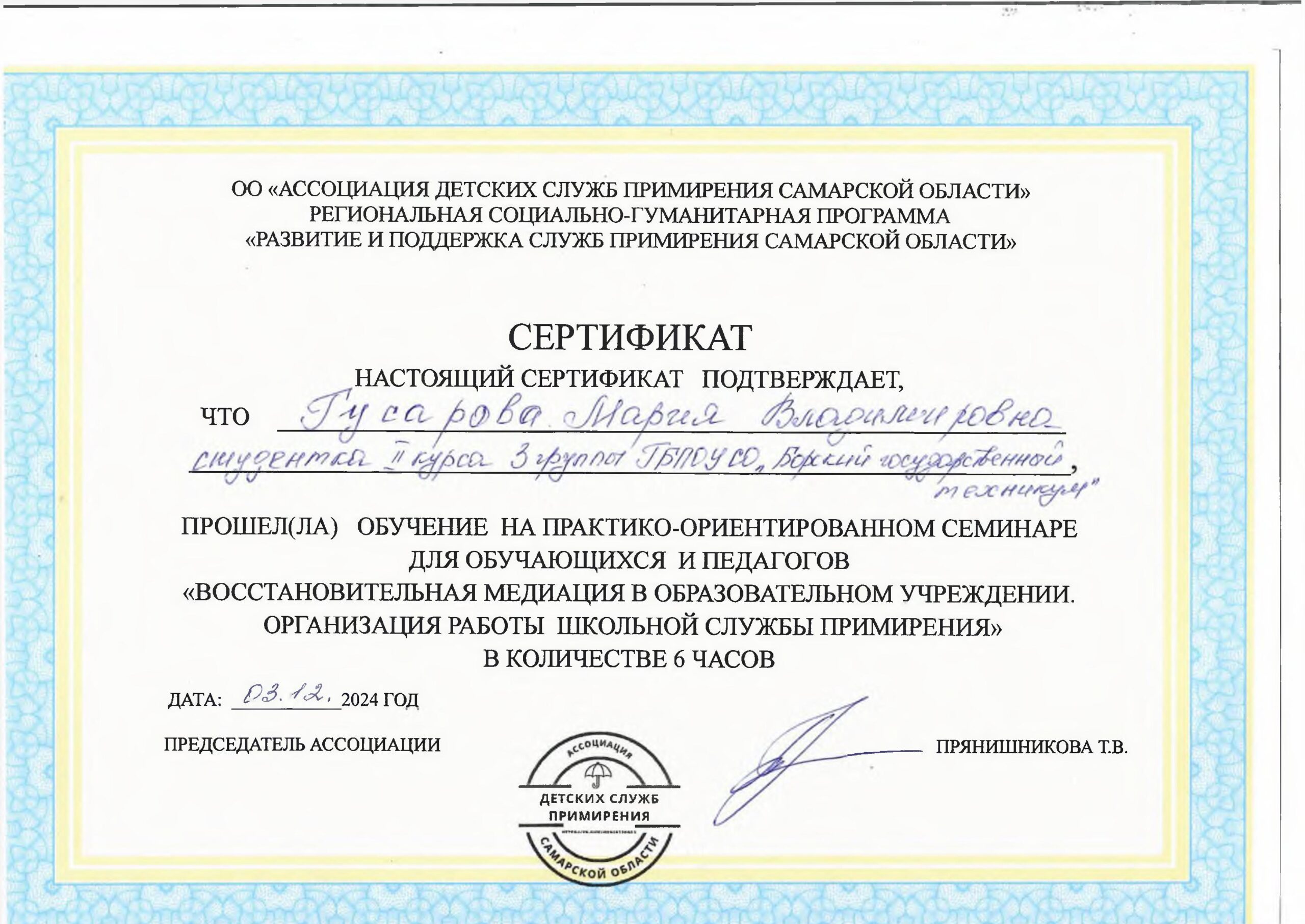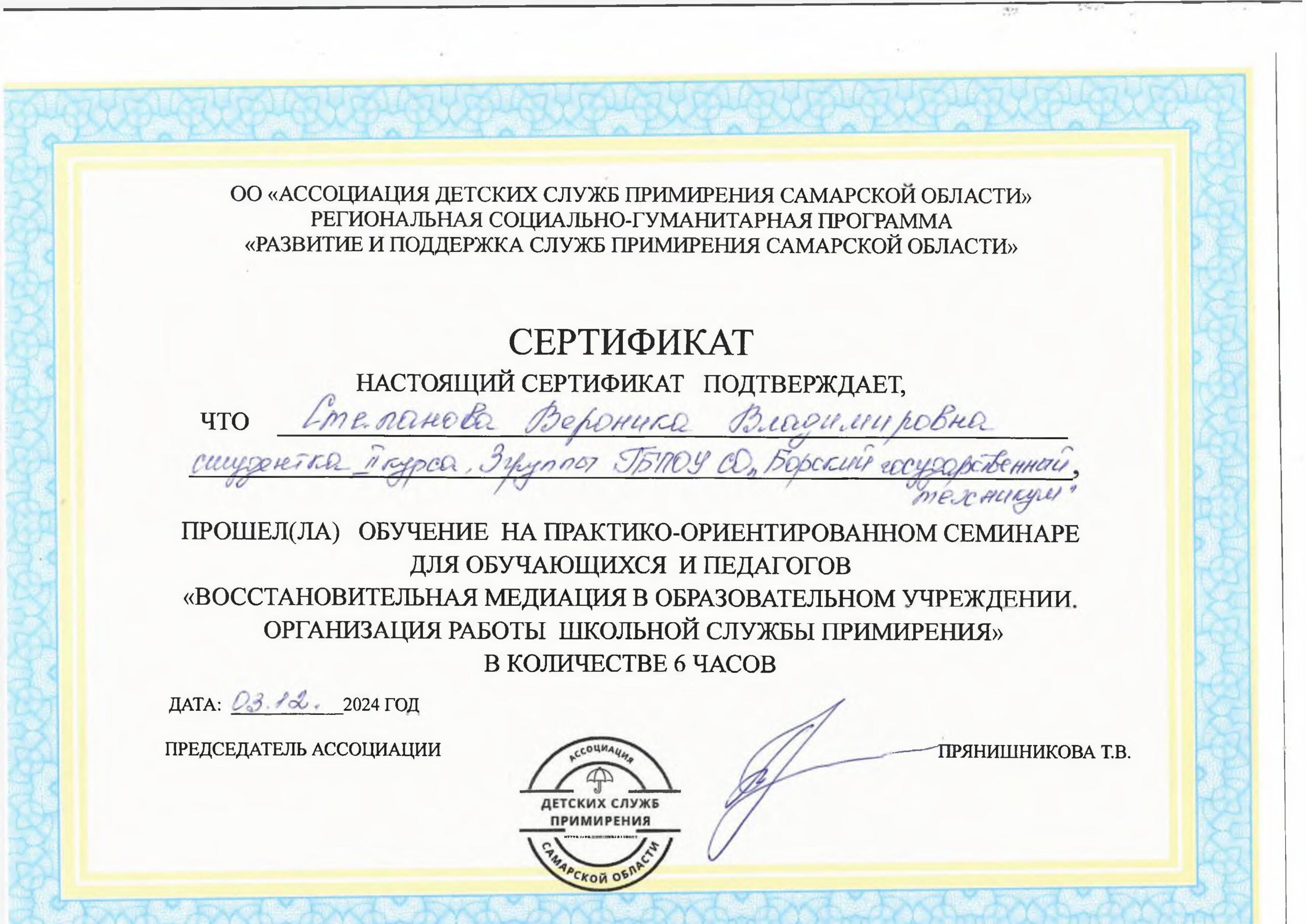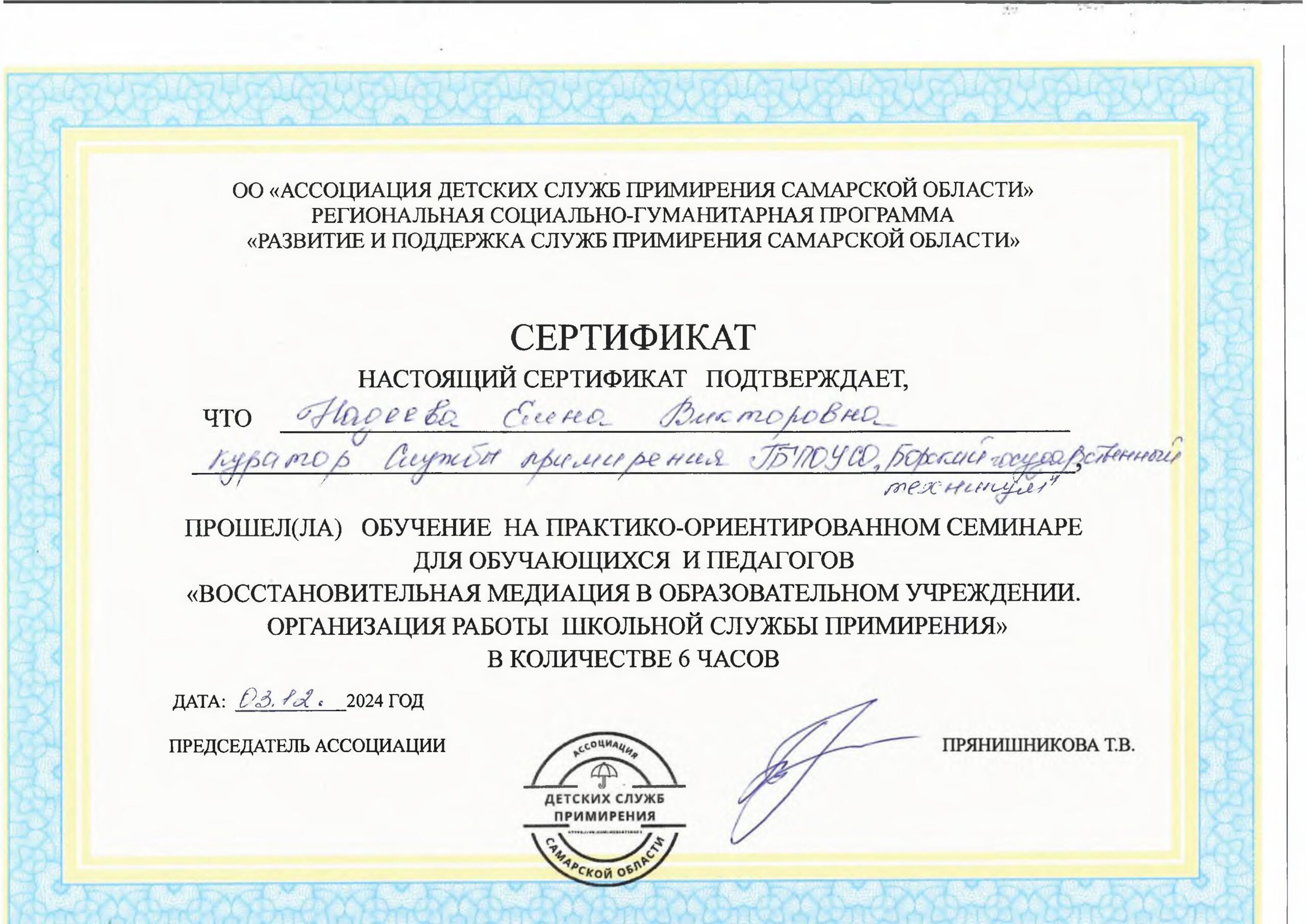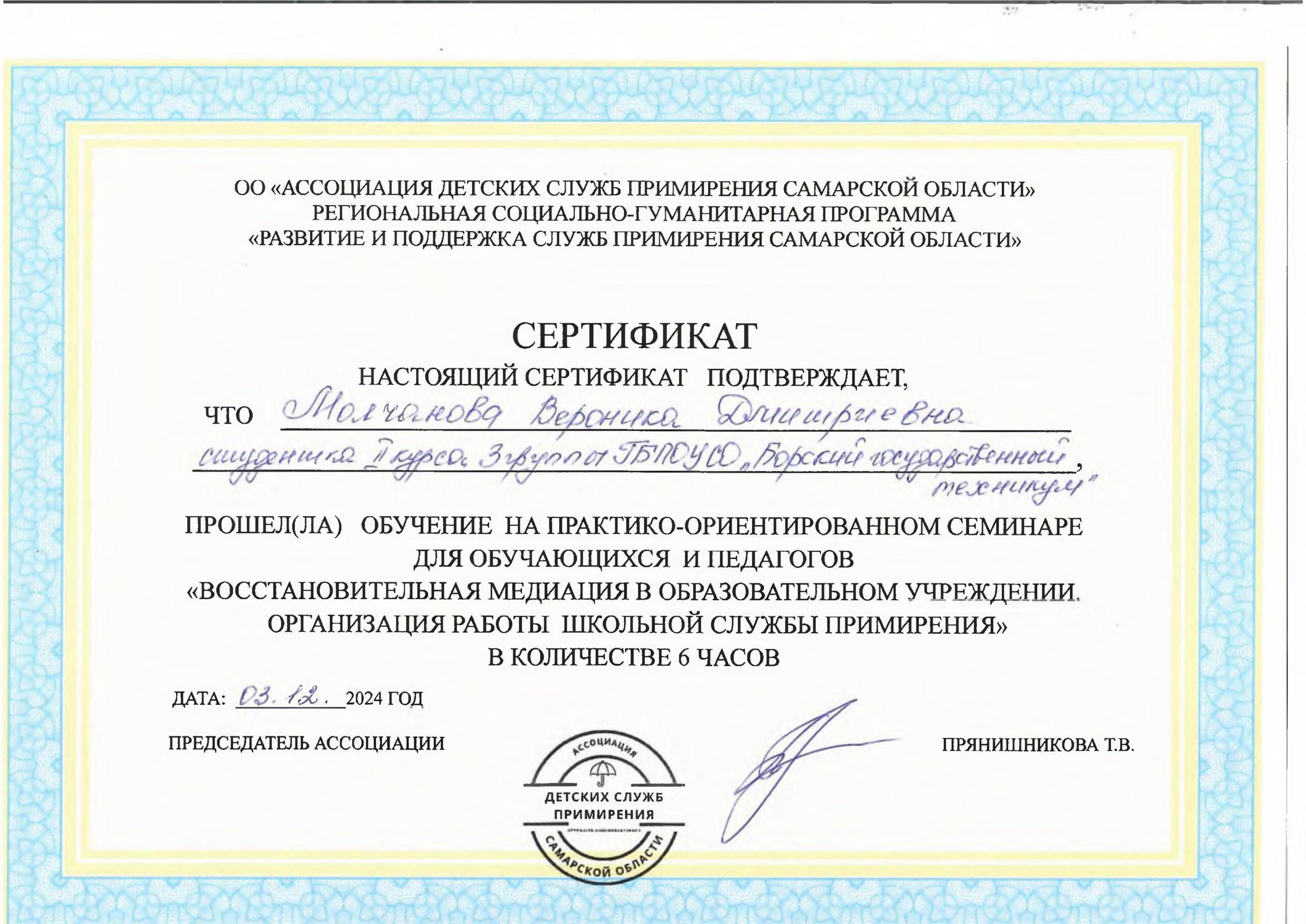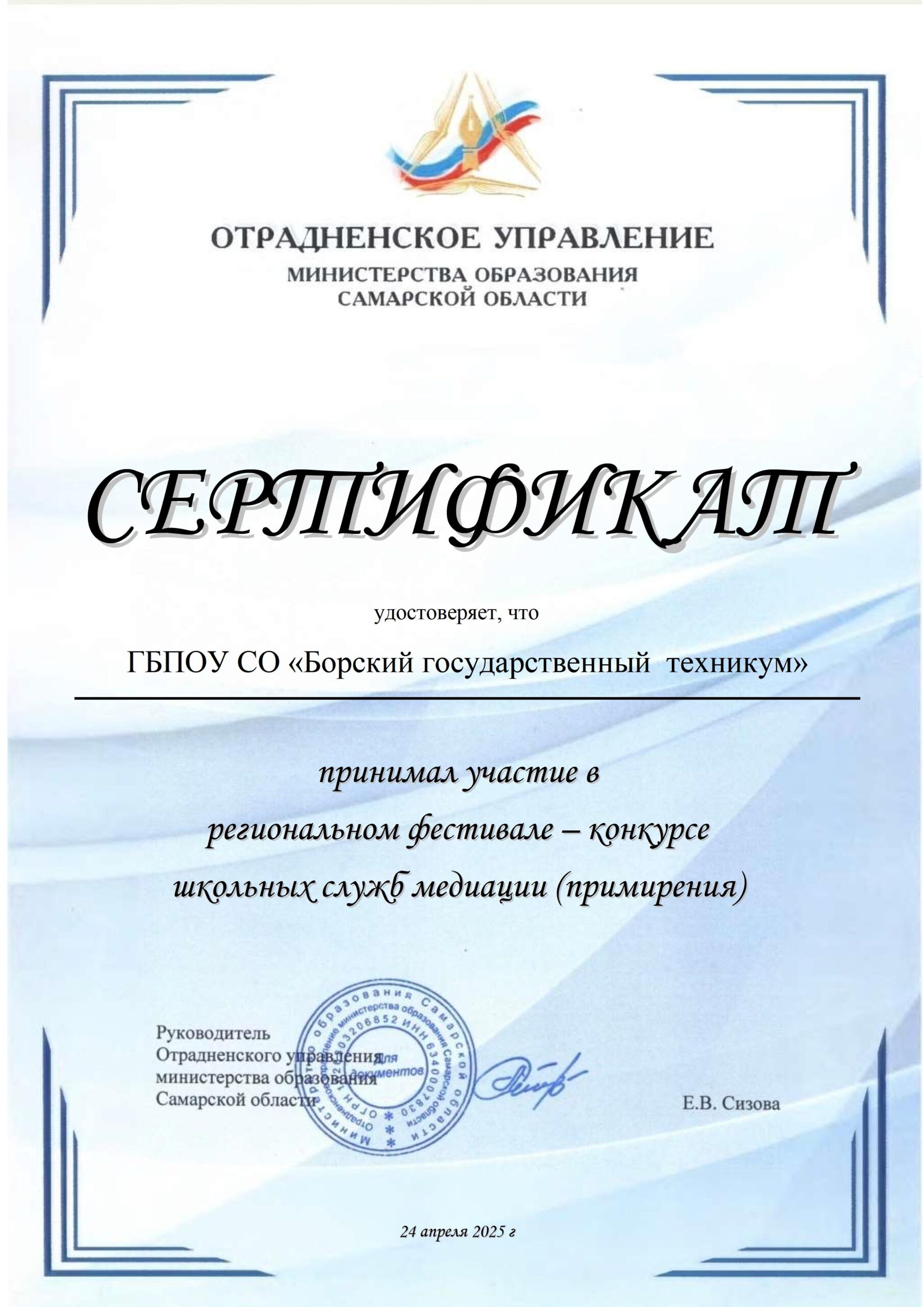 Статья о службе примирения ГБПОУ СО «Борский государственный техникум»